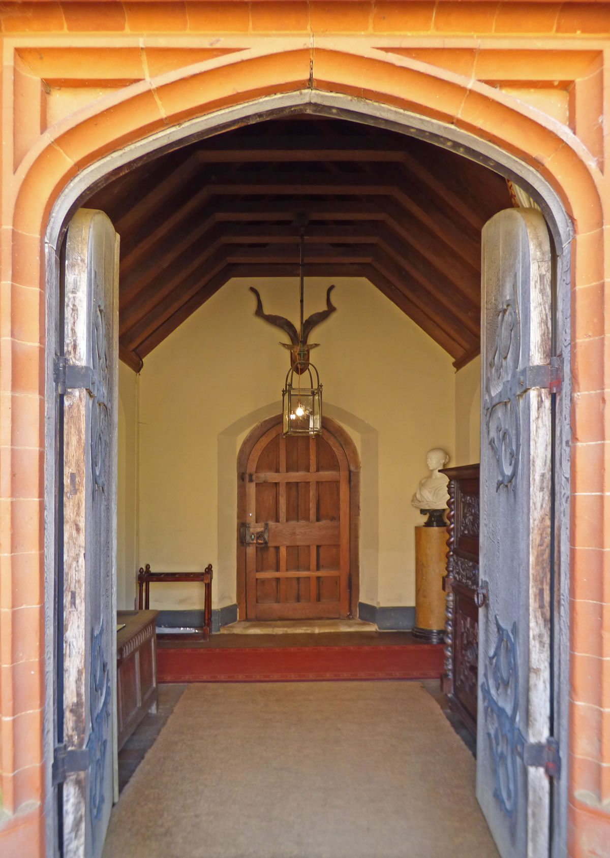 We now move over the bridge and enter into the Courtyard. The courtyard and gatehouse are similar in style to that of a Cambridge or Oxford college. The accommodation on the right hand side (as you enter the courtyard) would have been occupied by the family, with the left hand side taken up by kitchen (now the cafe) and service staff. Today, in the Courtyard you will find a cafe, toilet and National Trust shop, plus the main entrance to the hall for visitors. |