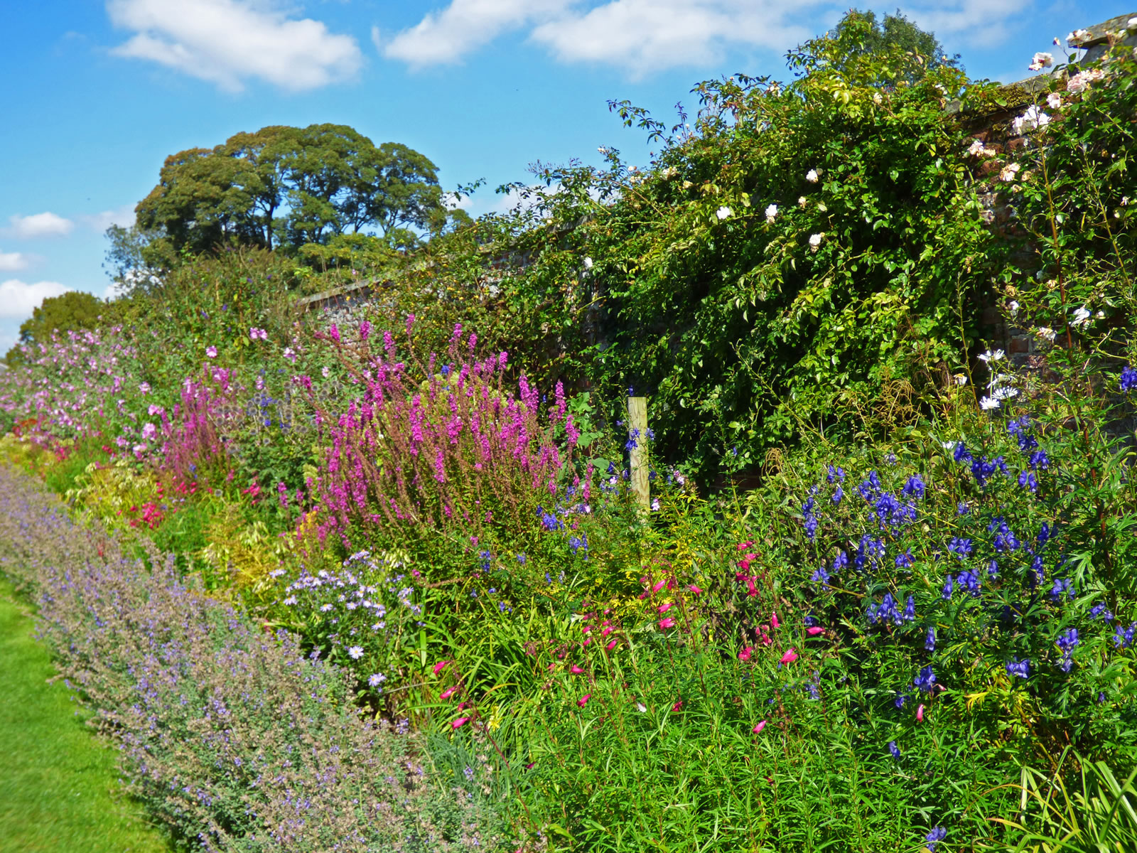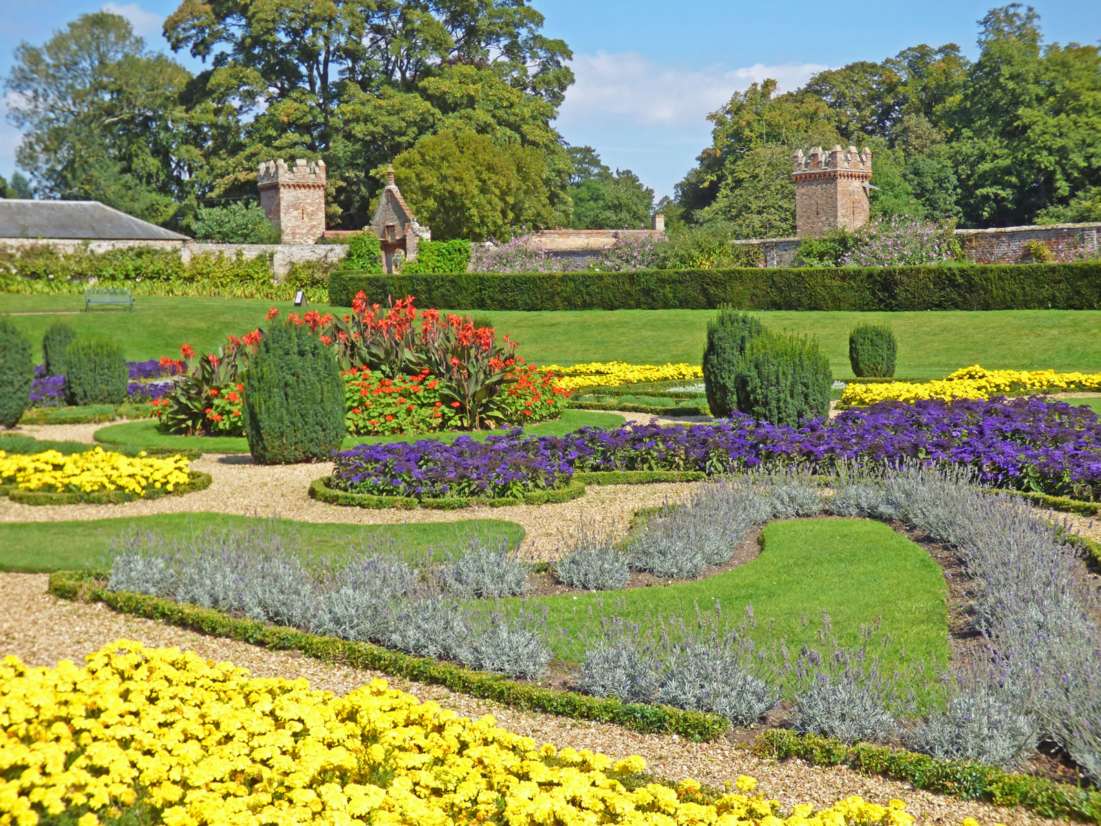 Oxburgh's Gardens star attraction is the Parterre de Compartiment, laid out in 1845. The idea was taken from a garden seen in Paris, where different coloured flowers are separated by gravels (and other different coloured materials). Located just over a clipped yew hedge from the parterre is a long Herbaceous Border containing many different shrubs and climbers.The Victorian Kitchen Garden is enclosed by castellated walls and contains many vegetables and herbs. There is also an Orchard containing different varieties of Norfolk apple and pear. |