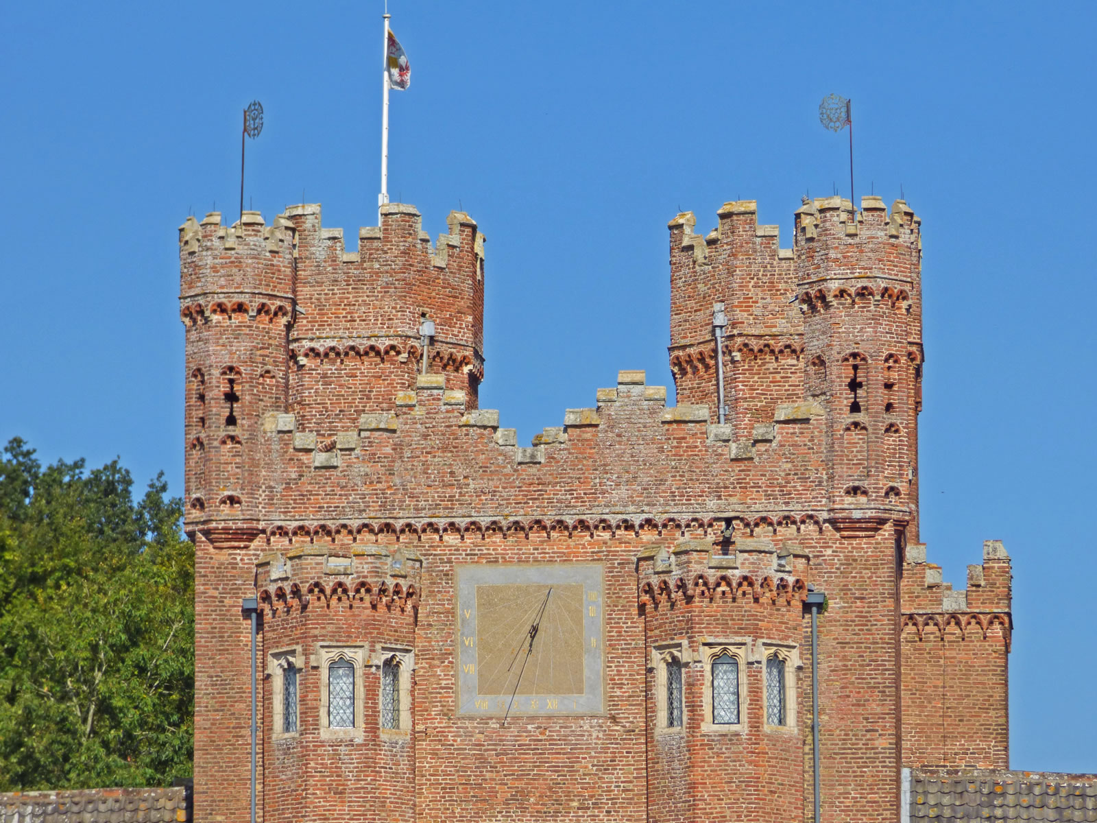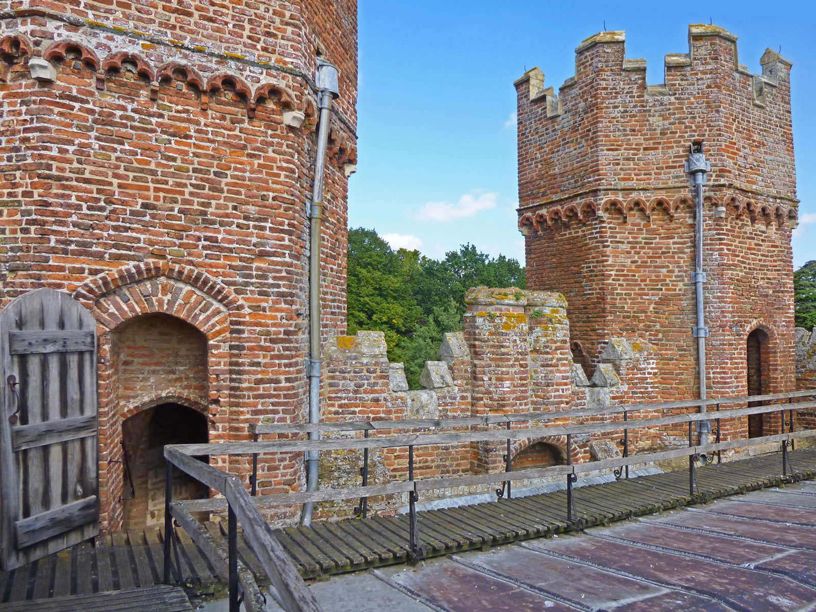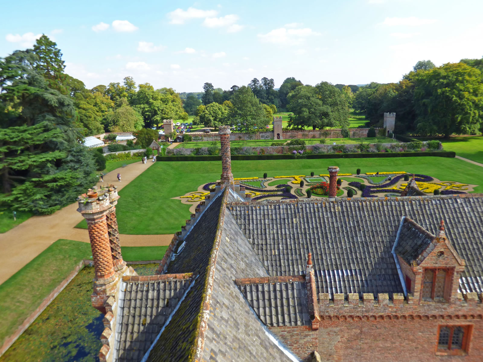 We start our tour of Oxburgh in the grounds of the hall. You can walk around all four sides and get the best views of the hall across the moat. The moat not only offered a line of defence, it was also popular for swimming by the family in the summer. The gatehouse is the oldest part of the house, but the entire structure is built from skillfully carved bricks and stone. Many parts of the building were added and adapted during the 19th century leaving the splendid mix of styles we see today. Particular attention should be given to the chimney stacks, turret towers, oriel windows and the battlements. Oxburgh was certainly built as a statement of status and power! |