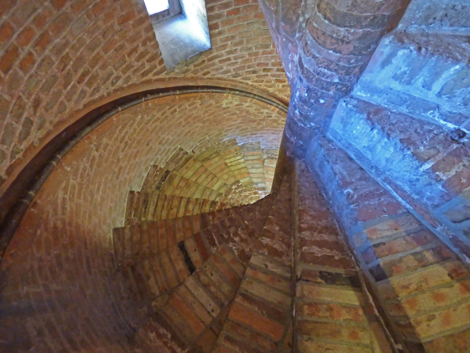 The Gatehouse Staircase takes you up from the Queen's room onto the Roof of Oxburgh Hall. The stairs themselves are a good display of 15th century workmanship, with intricate brickwork and carefully designed windows. Once on the roof, you can take in the wonderful panoramic views in all directions. At one time the roof was a useful look-out for would be attackers and a series of slots allowed missiles to be thrown down. The area around the hall was once situated in the middle of marshy fenland, but drainage dykes have now allowed it to be cultivated and taken over by pretty countryside. |